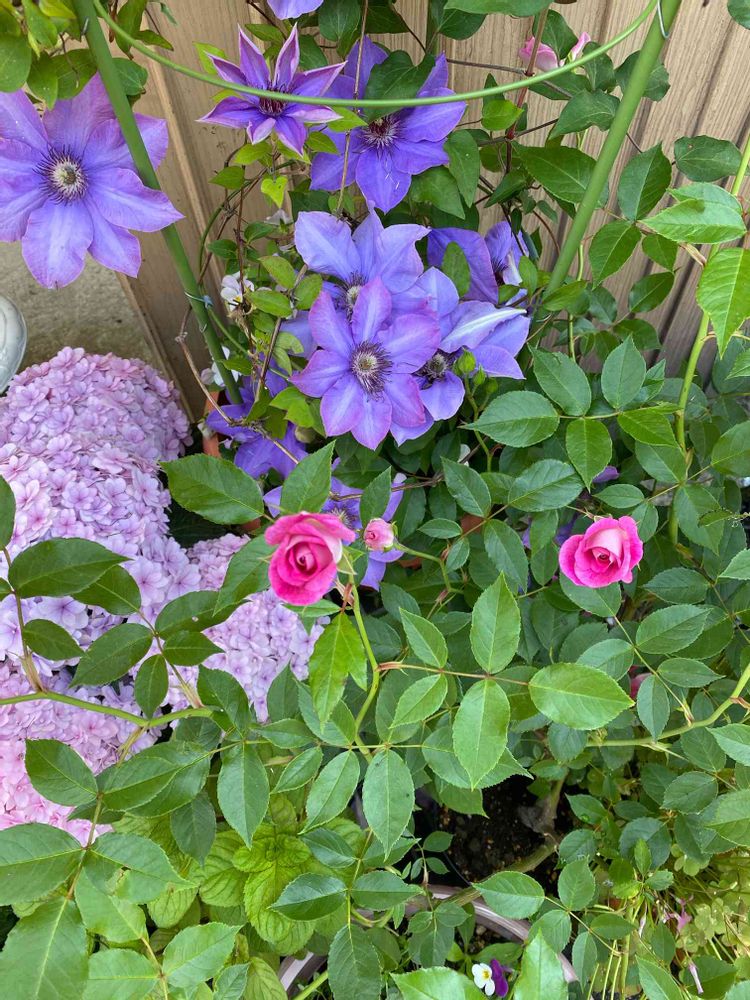 バラの開花にクレマチスが残ってくれて良かった(^_^;) 開花期調整難しい💦