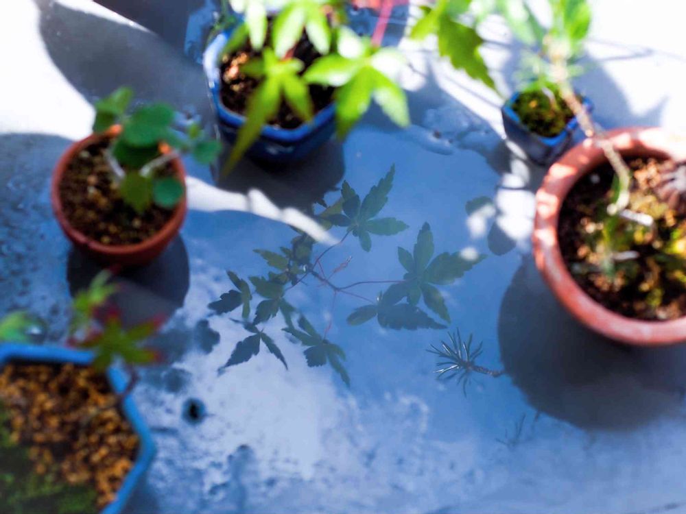 鉢にお水をやっていたら、ベランダの床にヤマモミジが映り込んで綺麗だったので、チョロチョロと床にお水を撒いてパチリ。やっと晴れて嬉しい水やりタイム☀️