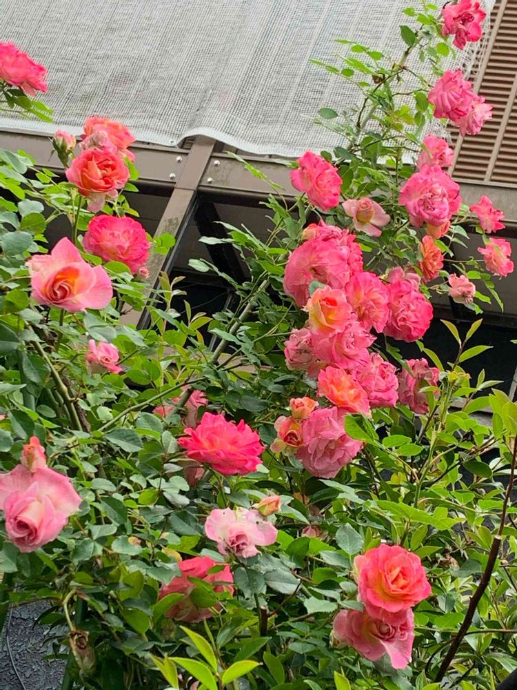予想外の薔薇🌹さんが上へ上へと伸びているのに気が付くのが遅く慌てて手作りアーチを作りましたが後ろ側、狭い所で上へ上へと伸びています〜!ヽ( ̄д ̄;)ノ=3=3=3