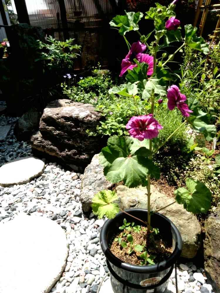 種から育てたマロウ、二年目でやっと花が咲いた。