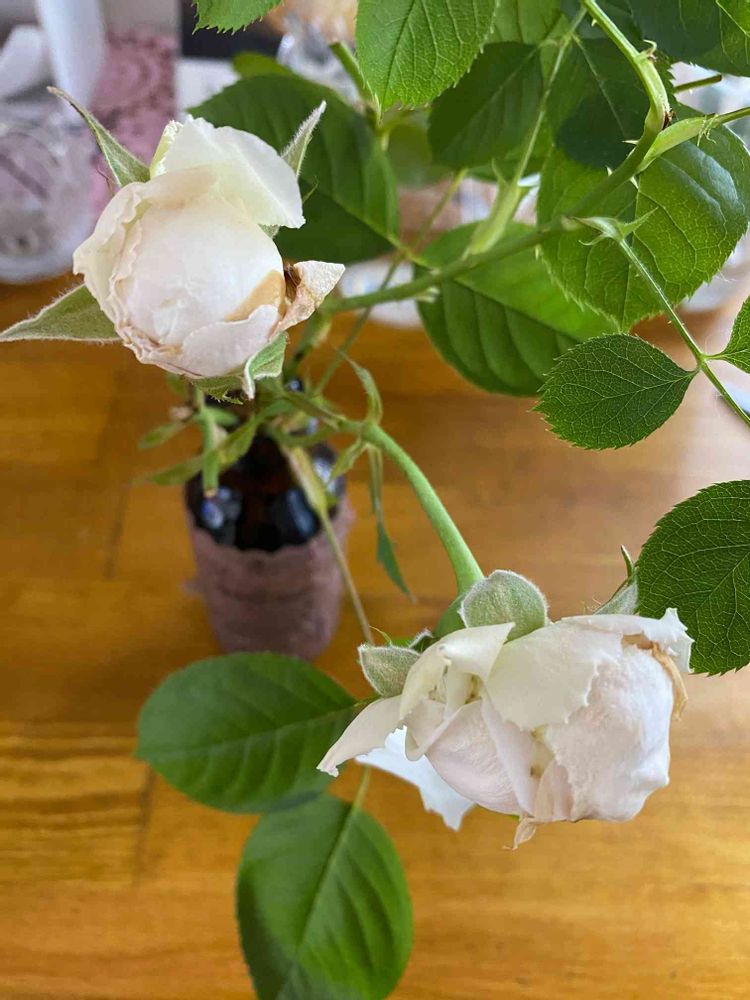 最初の三輪は綺麗に咲いてくれましたが、後咲きはじめた蕾さんは、花びらの一部が変色してしまい、上手く咲けない様子。