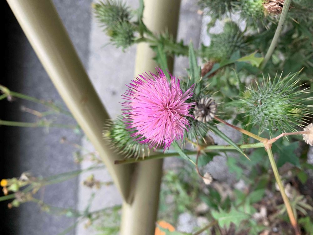 道端に咲いてたピンクのチクチクした感じの花はなんだろう⁈分かる方いますか⁈