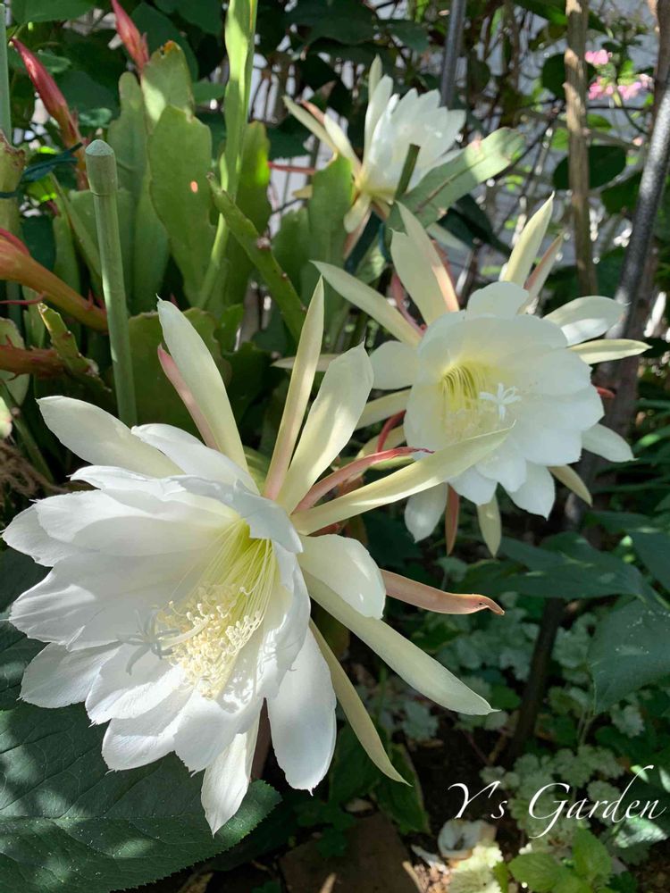 月下美人は夏〜秋の夜中にむせ返るような芳香を漂わせ咲き始め、朝にはしぼむので見逃すことがあります🌵😅
