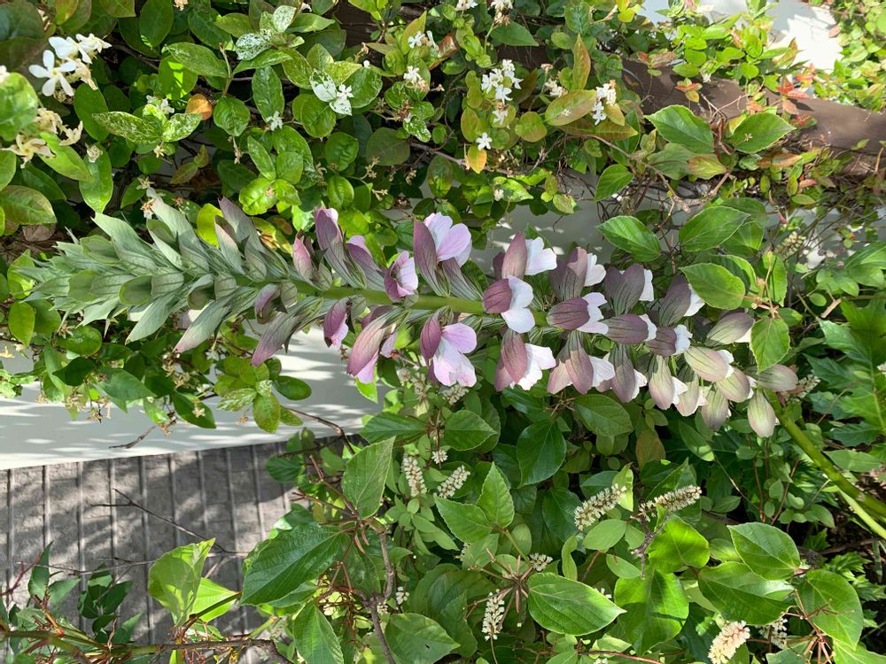 大きな葉っぱと年に1度縦に長い花が咲きます。