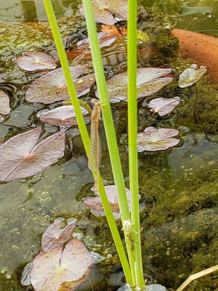 我が家の睡蓮池(トロ箱製)でイトトンボが羽化しました