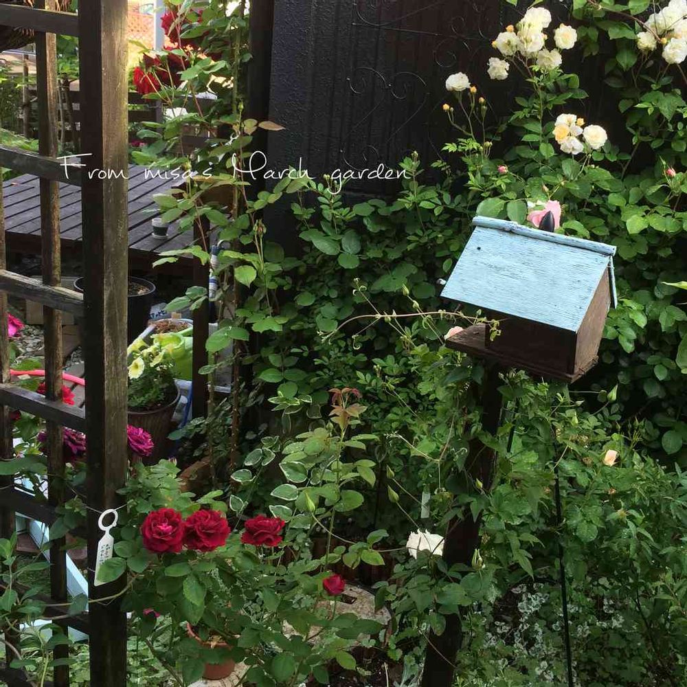 🍃の緑とお花の色具合の比率が素敵ですねぇ💓💓気になってた巣箱の屋根のブルー好き🎵🎵良いなあ~😍