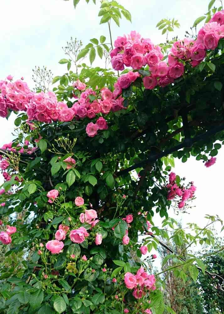 ピンクのバラのアーチをぬけると