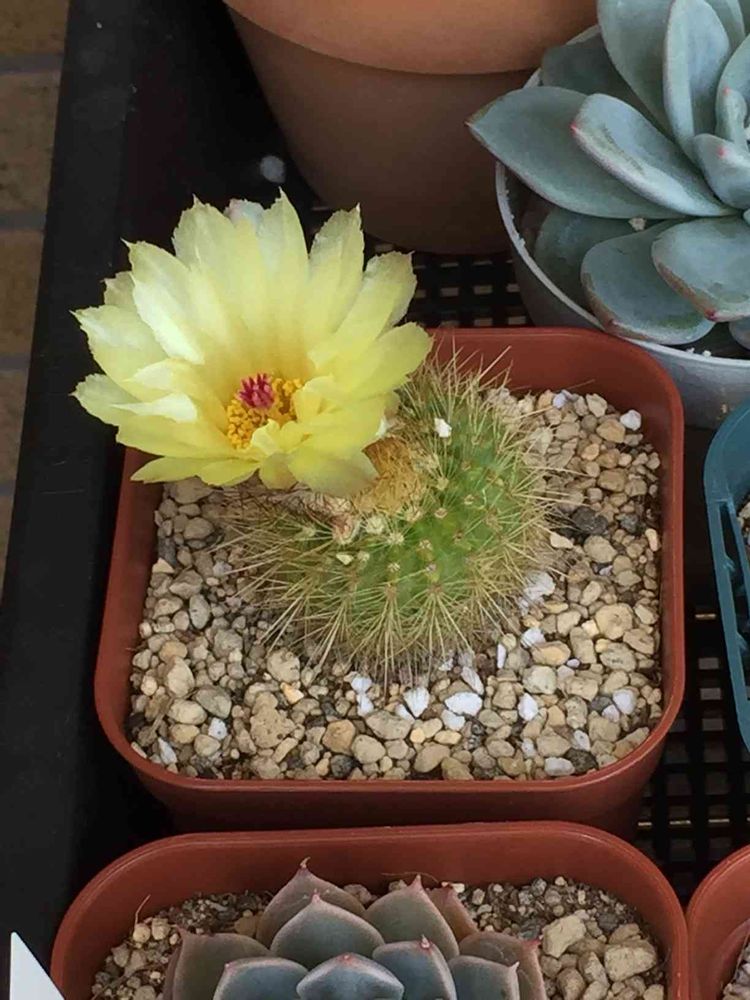 数ヶ月前にPortobello Marketさんのyahoo店で多肉ちゃんを買った時にオマケで一緒に入ってたサボテンさんなのですが、今日見たら可愛いお花が咲いていました(*^^*)