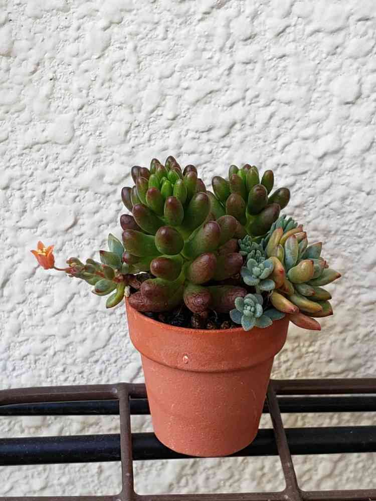 1ヶ月前に初めて寄せた多肉さんに花が咲きました🏵️