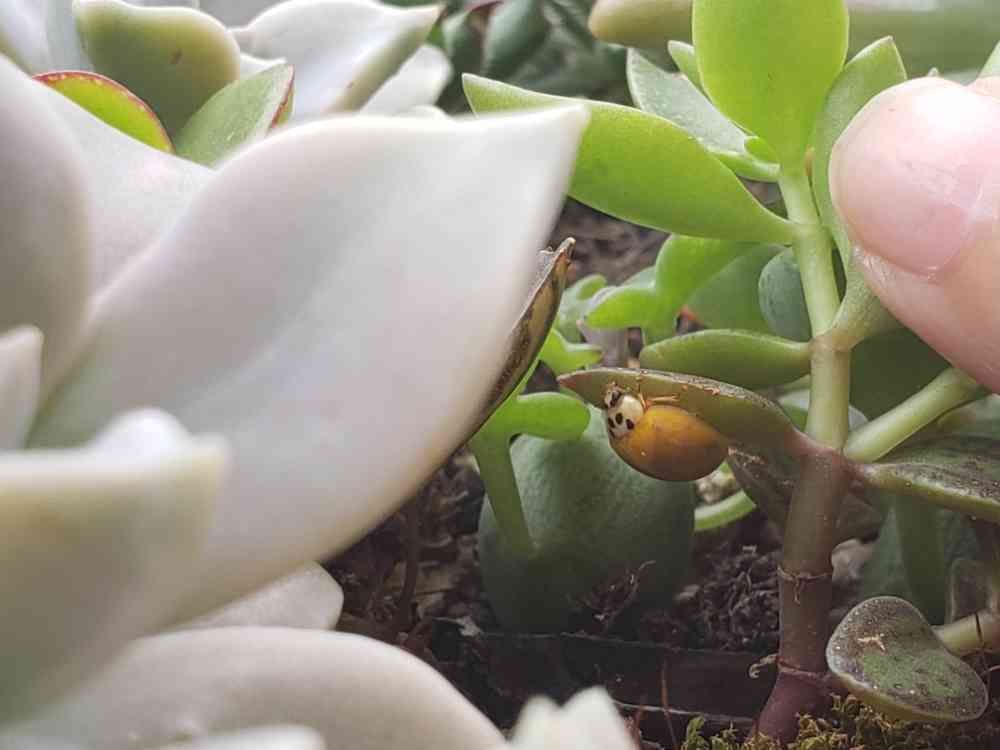 3匹持って帰ってきて、2匹はナミテントウの四つ星でしたが、1番遅く羽化した子がこの子でした。ウチの近所はフタホシてんとう虫が多いので、きっとフタホシだと思ってたのにヨツホシとキイロテントウだとは❗