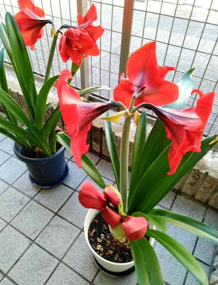 手前のツボミは4つあります。奥のは3つの花が咲きました。