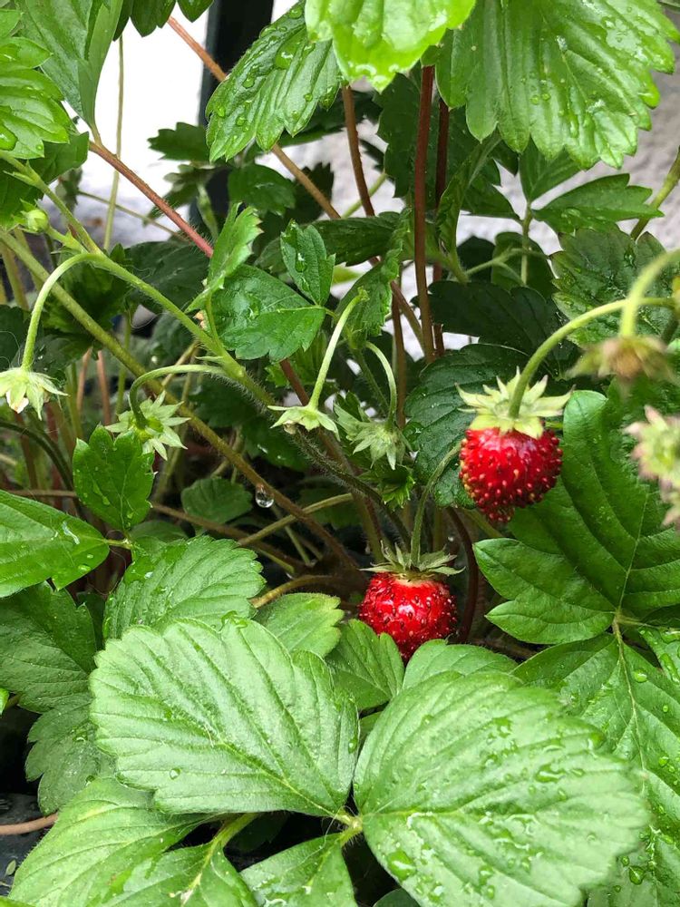 🍓イチゴも赤くなっていて!収穫してすぐに食べてしまいました。甘かったです🤗
