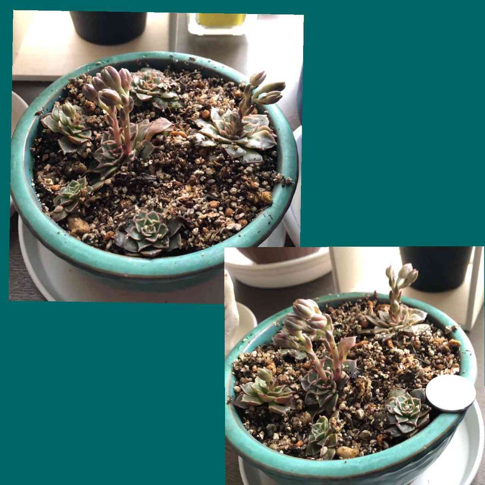 鉢も一緒に入れてくれてたので、そぉ〜っと取り出して鉢に入れ直してみました。母はとっても小さく育てていたので、とってもちいちゃな「キングスター」です❤️大きさが分かる様に一円玉を置いて写してみました😊
