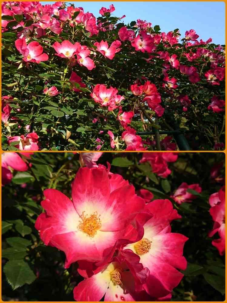 久しぶりに市内の公園へ出掛けました。色んなバラが咲いていましたが、カクテルというバラが青空をバックに、とても綺麗でした😃🎶 (1957年メイアン作出のバラとのことです)