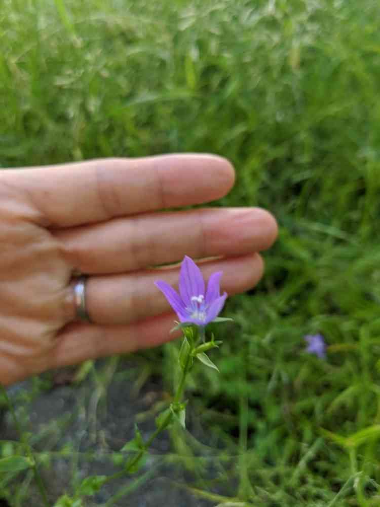 公園でこんな小さな花2本咲いていました。キキョウ?