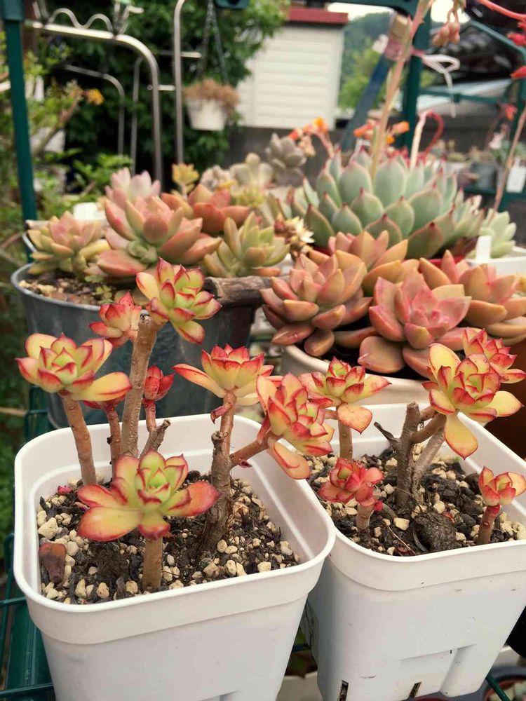 朝、出勤前に📸👀upしてよんと声が聞こえたんだぁ😄✨簡易ハウス四段の1番上にいる子達💟春から外管理(放置)で☔️💨🌦☀️の多肉達
