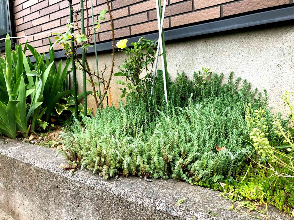 初めは数センチの葉っぱだったのに、毎年スゴイ勢いでミニバラの足元を埋め尽くしてます。壁沿いの背丈は30cmくらいありそう😃やばいねー。
