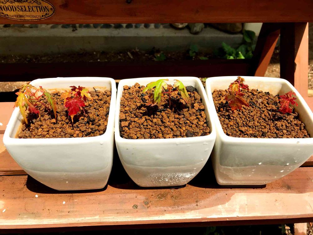 庭に自生しているもみじの苗を鉢に植えてみました。何の品種かは分かりません。。