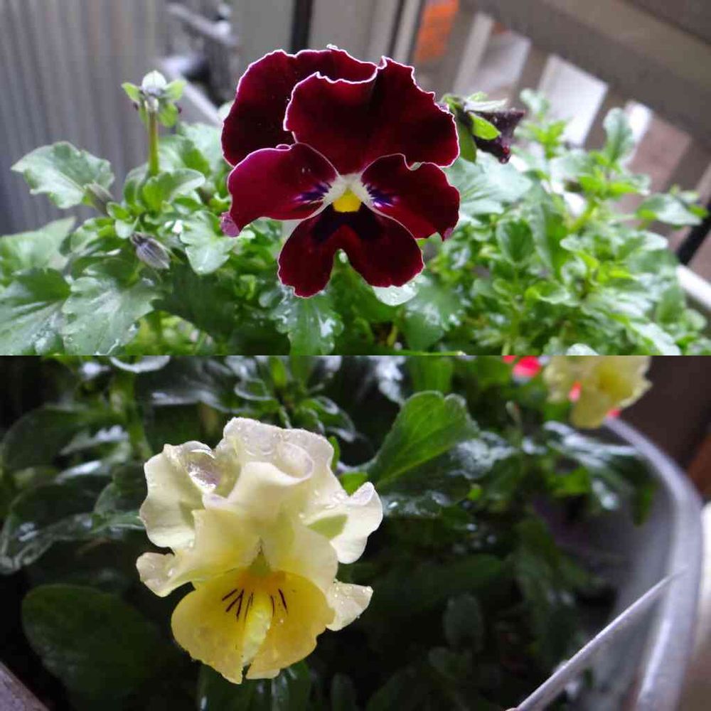 ビオラのミルフルが咲き始めました。あの半額さんたち、立派です🎵 沢山咲くのが楽しみ。