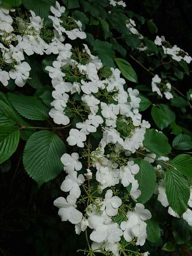 装飾花に囲まれた中央部の小さな花が生殖器をもつヤブデマリの花です。……って🔎情報です😄