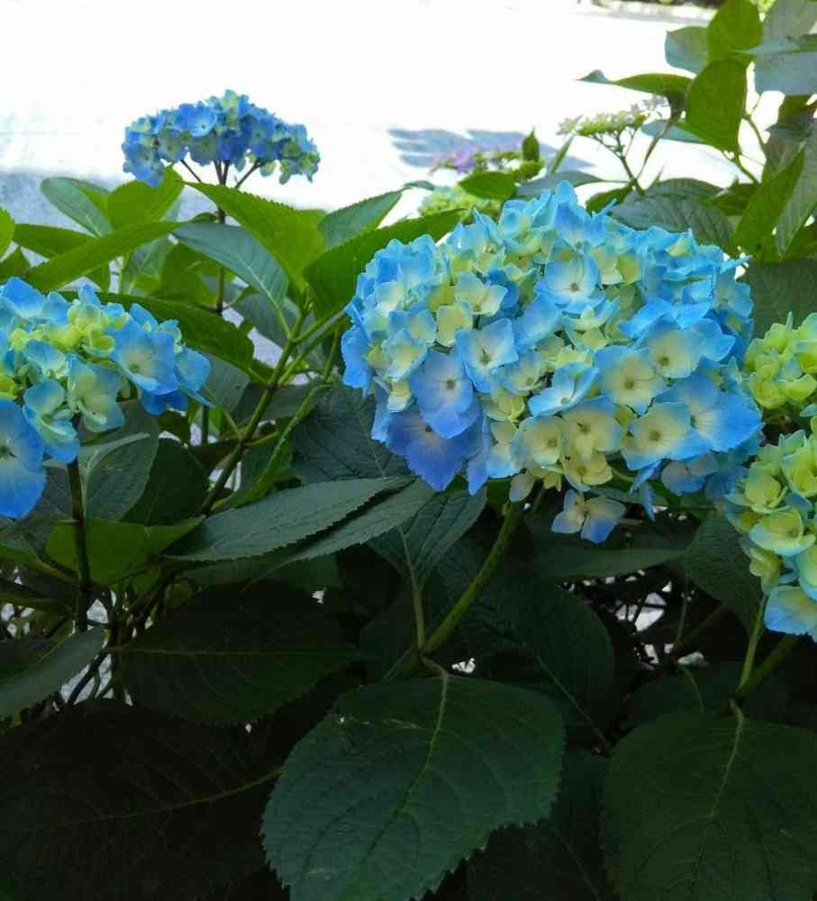 手毬咲きホンアジサイの花が青く色付いて綺麗です💕
