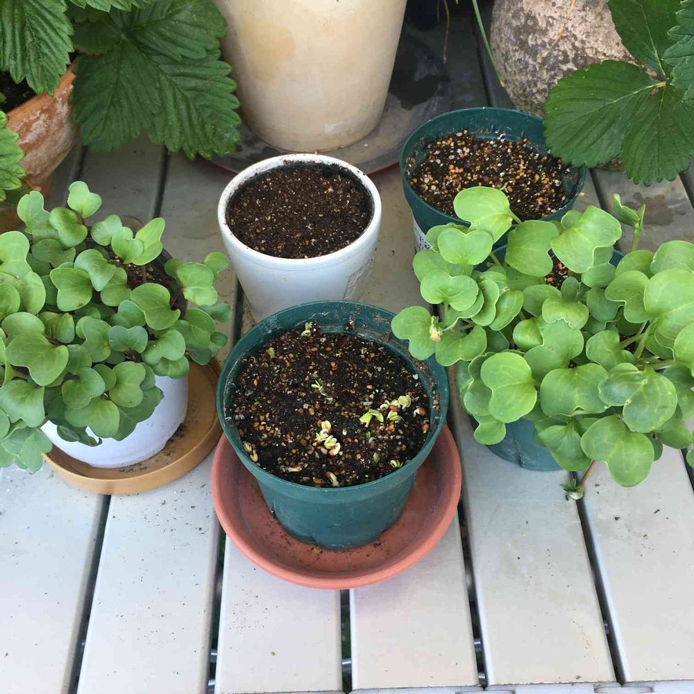 奥鉢は昨日収穫し、今朝種蒔きしました。土は石灰を少し混ぜ上だけ取り替えました。あまり大きく成長しないかもしれません。