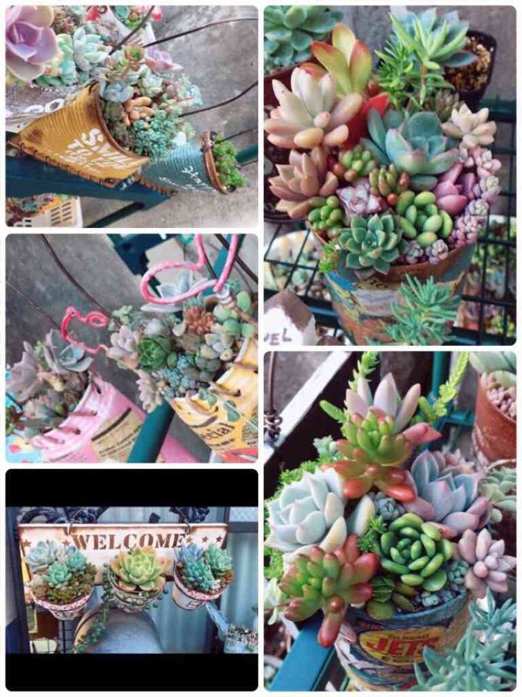 お出かけ先,リメイク缶,多肉の寄せ植えの投稿画像