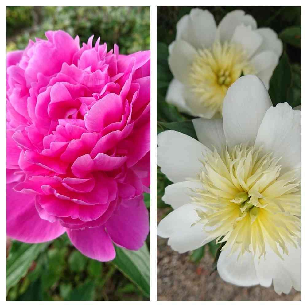 左の濃いピンクの芍薬は去年は白にピンクの筋がマーブルになってる感じの芍薬だった❗