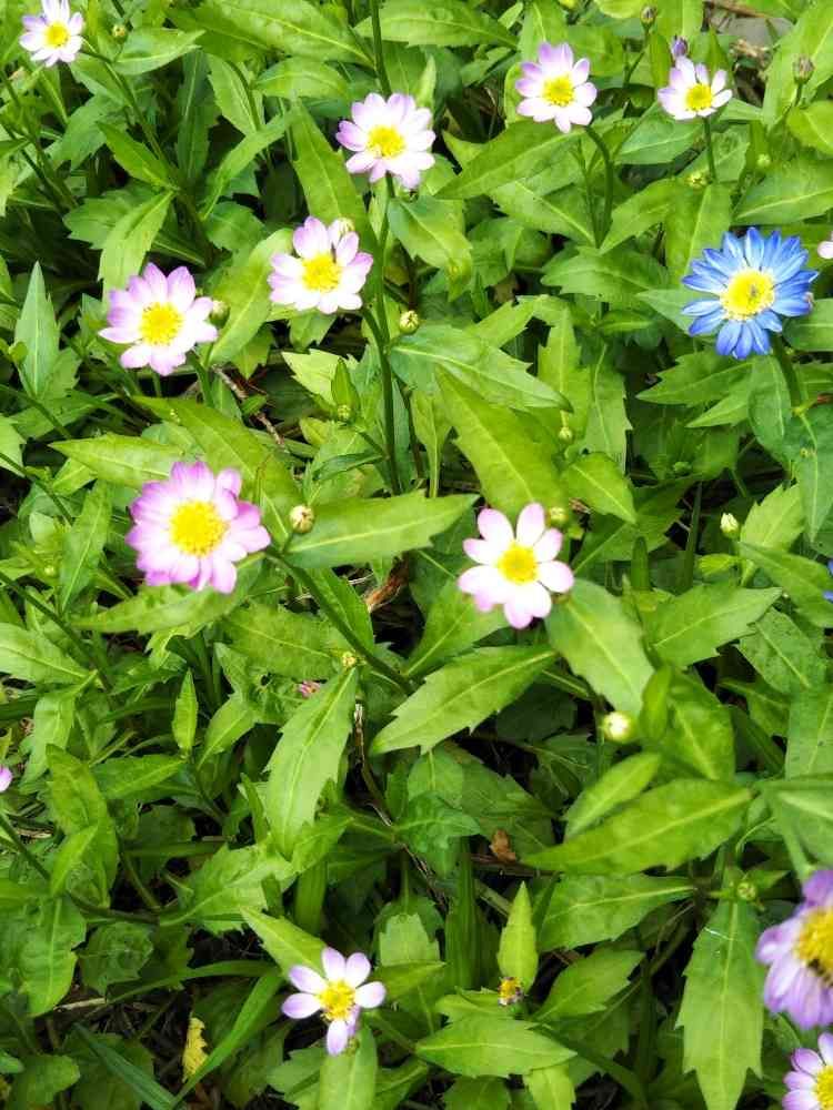 ピンクとブルー、同じ花?ミヤコワスレ?