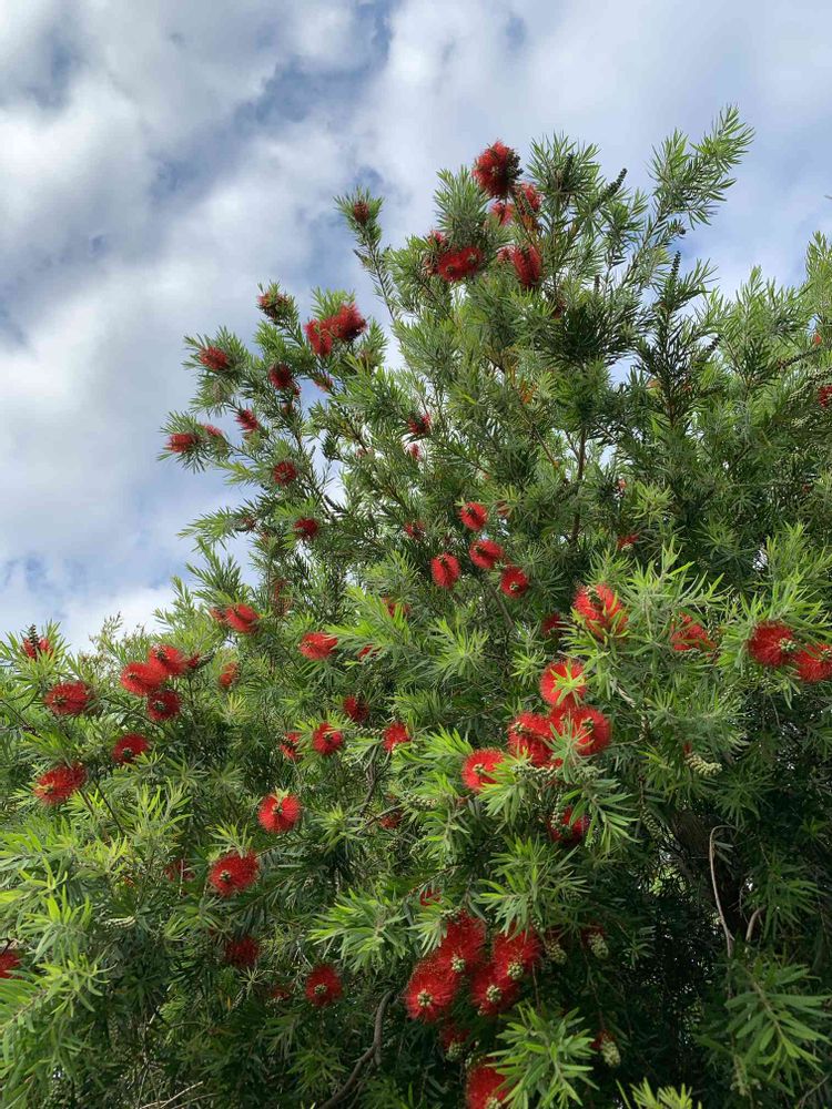 赤いブラシノキの花、たくさん咲いて、素敵ですね~!