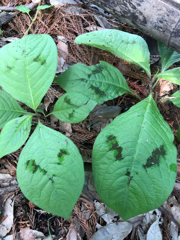 夏にシュッとした赤や白の可愛らしい花をつけるミズヒキの葉っぱでした😅