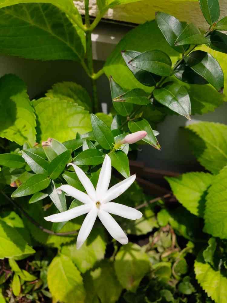形がかわいくて、近寄ってみたら、スタージャスミンというお名前。ジャスミンの香りは、ほとんどわからなかったのが残念😅