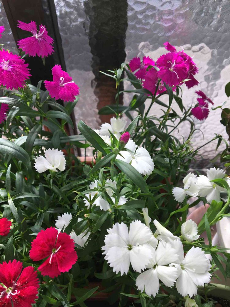 なでしこかセキチクかわかりません、どちらでしょう、教えてください。窓辺にプランターを置いています。