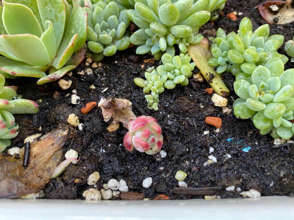 葉挿しから育ってすごい小さく可愛いこの子…やっと根が出て(ここまで根なしで育った)これからどんどん大きくなるかなー?