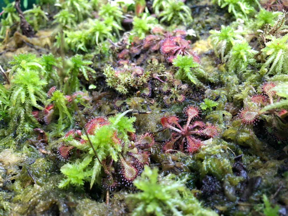モウセンゴケの他にハエトリソウ、サワギキョウ、トキソウ、ツルコケモモも植えてありますがいずれも元気ですよ。