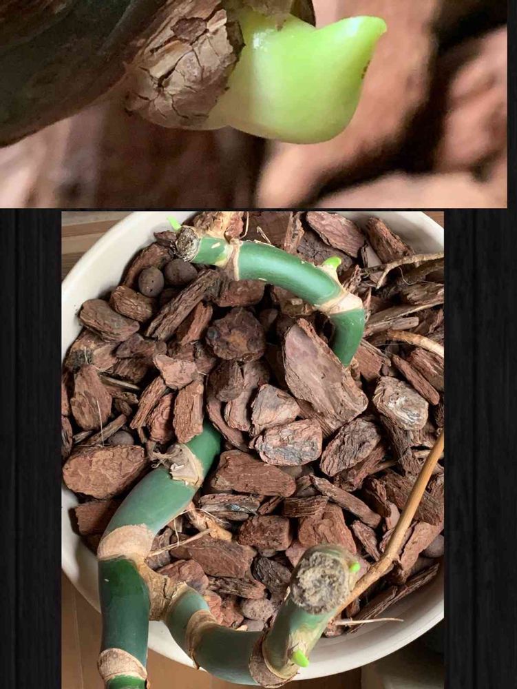 元株と茎からの芽が生えるところを初めて見ました🌱こんな風にちょこっと顔を出して生えてくるとは😲