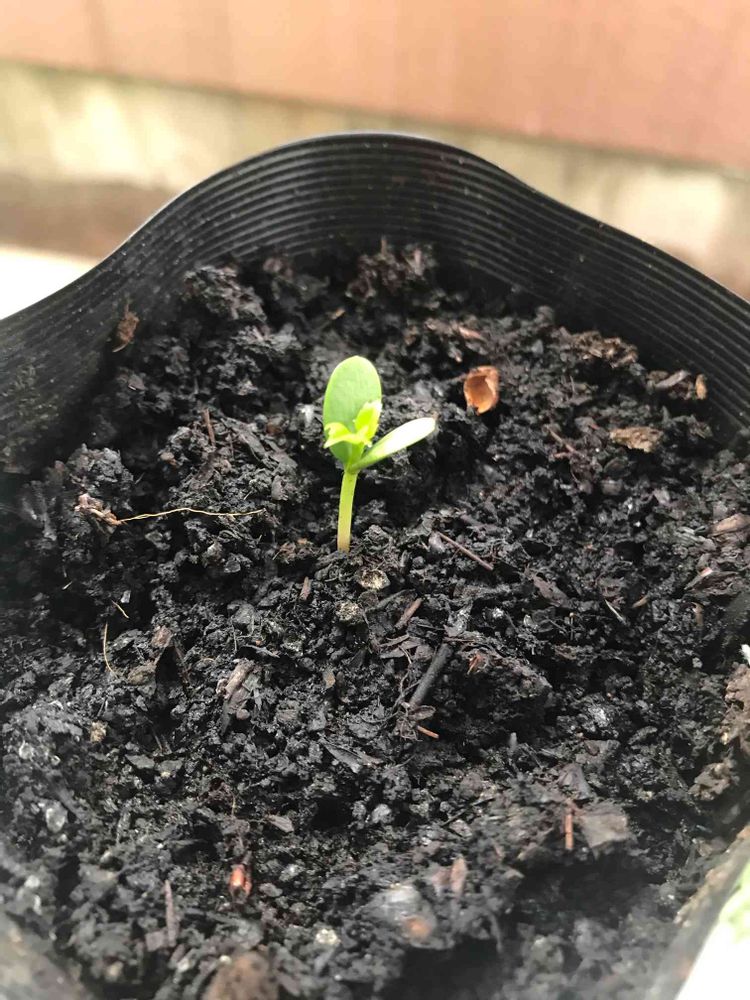 食べたりんごの種から育ってる。初めてりんごの小さな木見えて楽しみです😊
