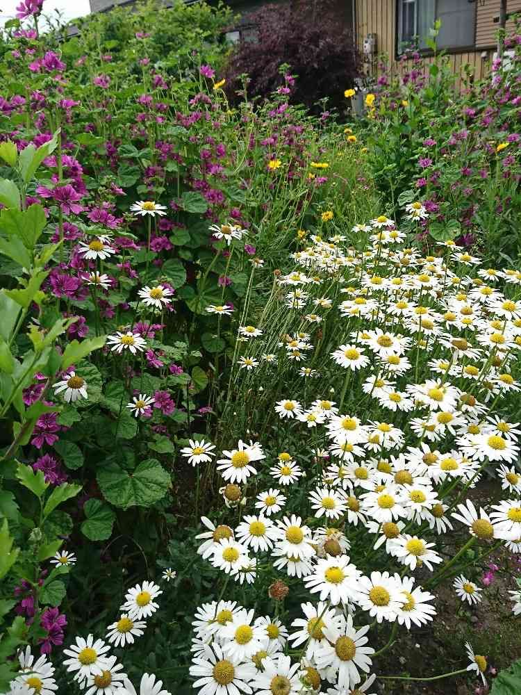マーガレット & ゼニアオイ 後ろにコレオプシスです😘💓…