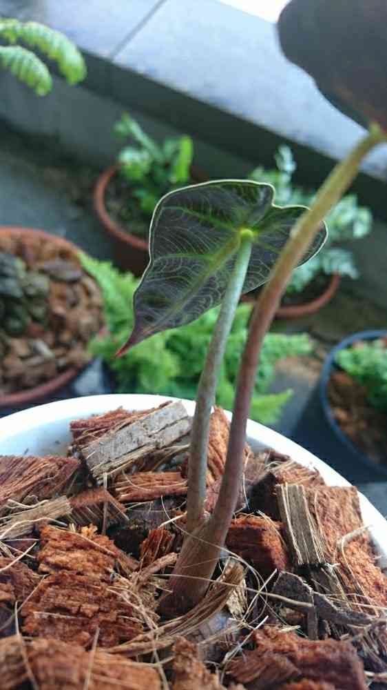アロカシアのやつ、表はおろか裏まで葉脈の走り方が抜かり無く妖艶。
