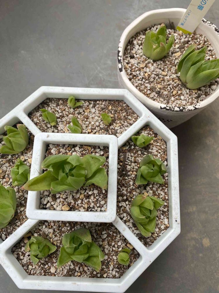 昨日身元を引き受けた、大増殖京の華さんを、セリアで見つけたリモコン収納ケースにまとめて植えてみました(。´_`。)