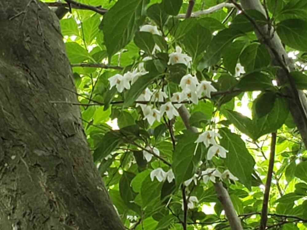 公園から入るハイキングコースで地面に白い花がほろほろ落ちていました。比較的大きな木の花の様です。