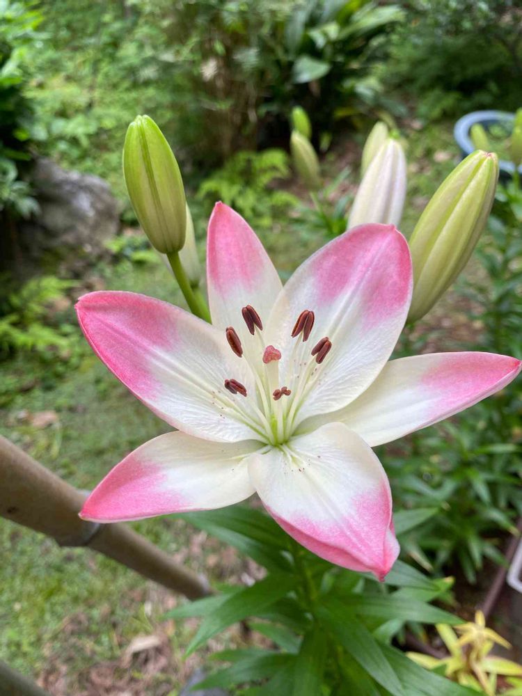 ここ数年、母の日に実母と義母に贈り、鉢植えして育てているもの。茎の高さは違うけれど、順々に咲いてきます。今年は開花が遅いような。