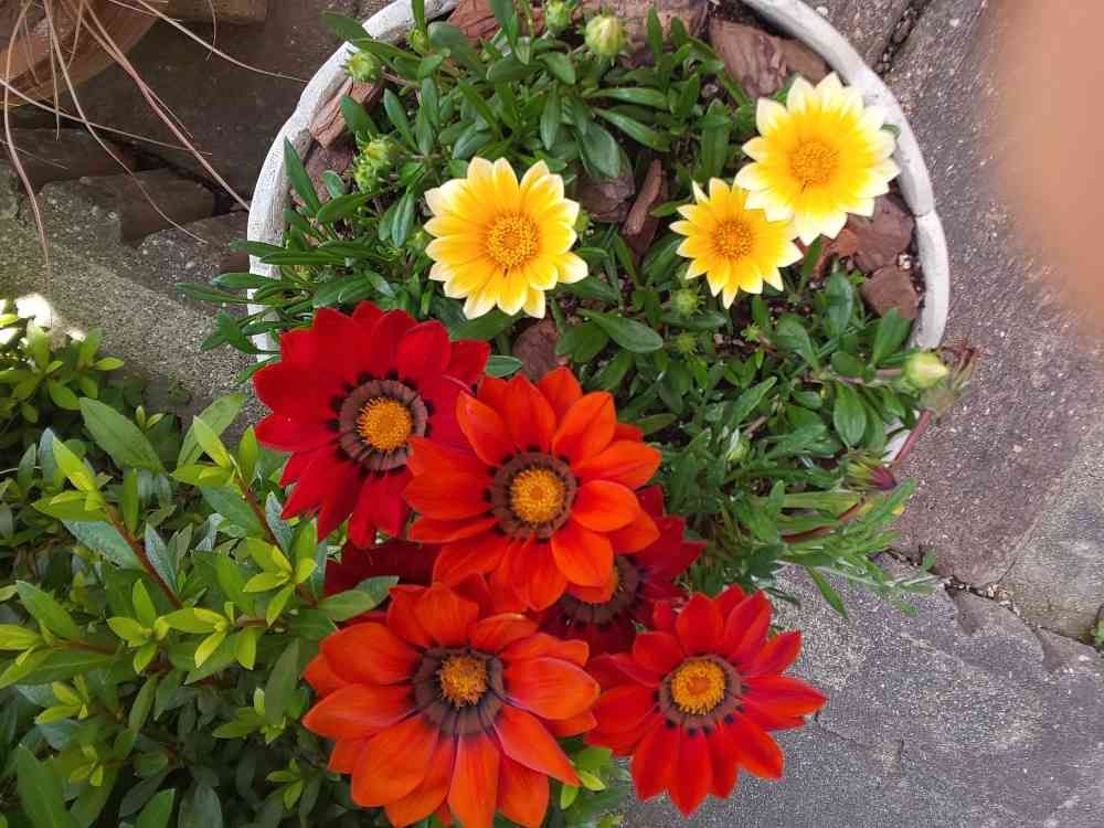 おはようございます☺⛅今朝のPicは元気カラーのガザニアです。ガザニアばかりの寄せ植えにしました💪🏻💕