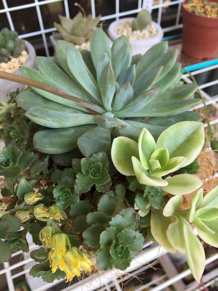多肉植中毒1ヶ月の時にHCで作った寄植えですが、なんとか育ってきました😄