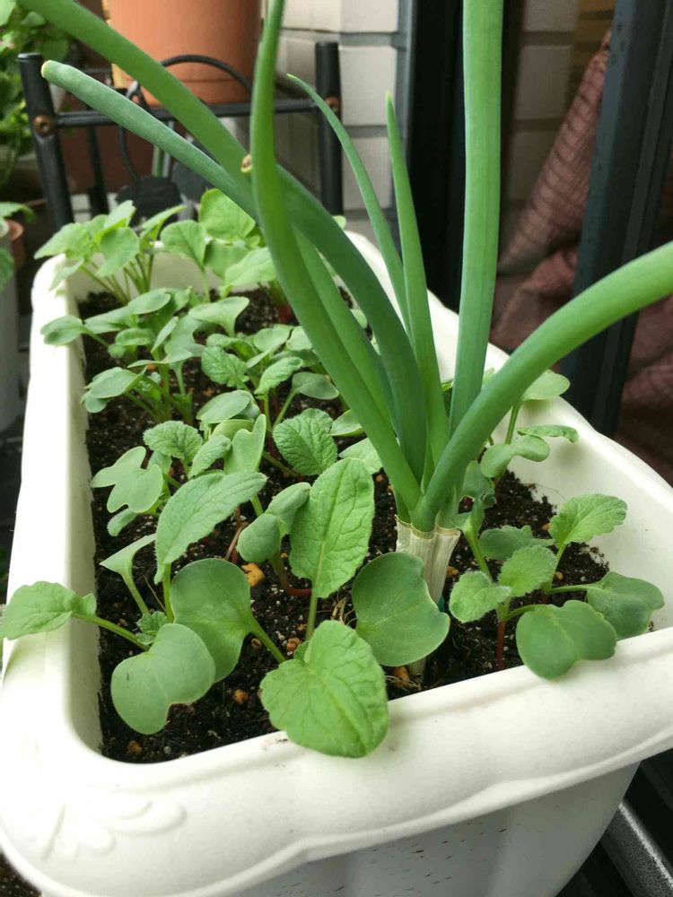 うざくぼんさんのバルコニー/ベランダ,なぜかネギ,はつか大根orラディッシュの投稿画像