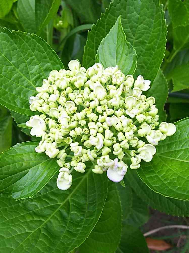野生化したあじさいがあちこちに。これはポップコーンだと思う。