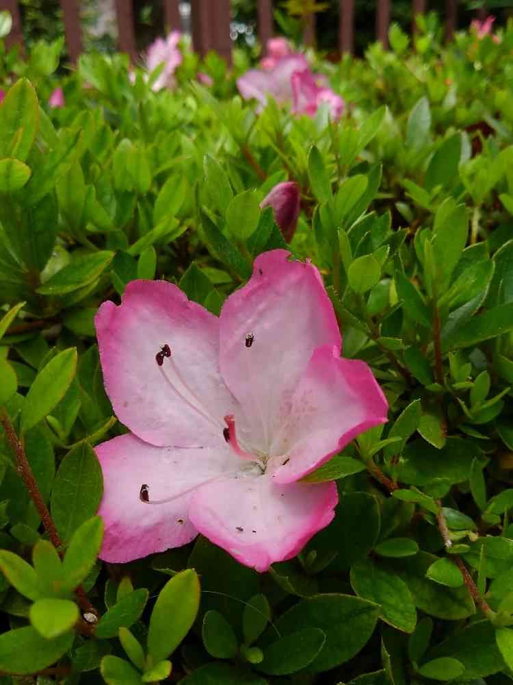 こんにちわ、可愛らしい、縁取りのあるさつきですね。