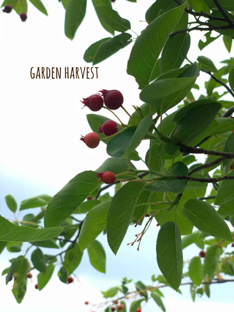 末っ子の手作りカカシのおかげで今年はたくさん実ったジューンベリー🍒 画用紙に書いた一つ目のオバケカカシには金色の折り紙が貼ってあるの。効果大だったハズ! 雨には弱いけどね🤣
