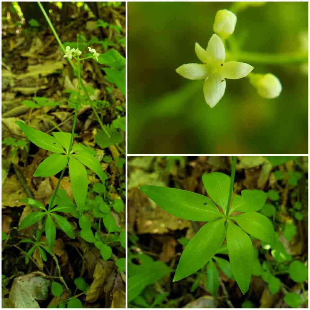 葉は6枚輪生する。クルマバソウは6-10枚輪生し、個人的には7枚のものと出会うことが多いかなー。