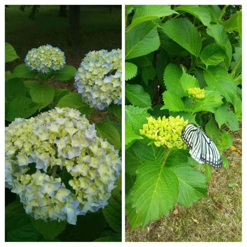近くのスポーツ公園紫陽花💙やっと咲き始めました。蝶々が、自分も、撮ってほしいとばかりに、じっとしてました。もう暫くしたら、満開になりますね❗️🎶
